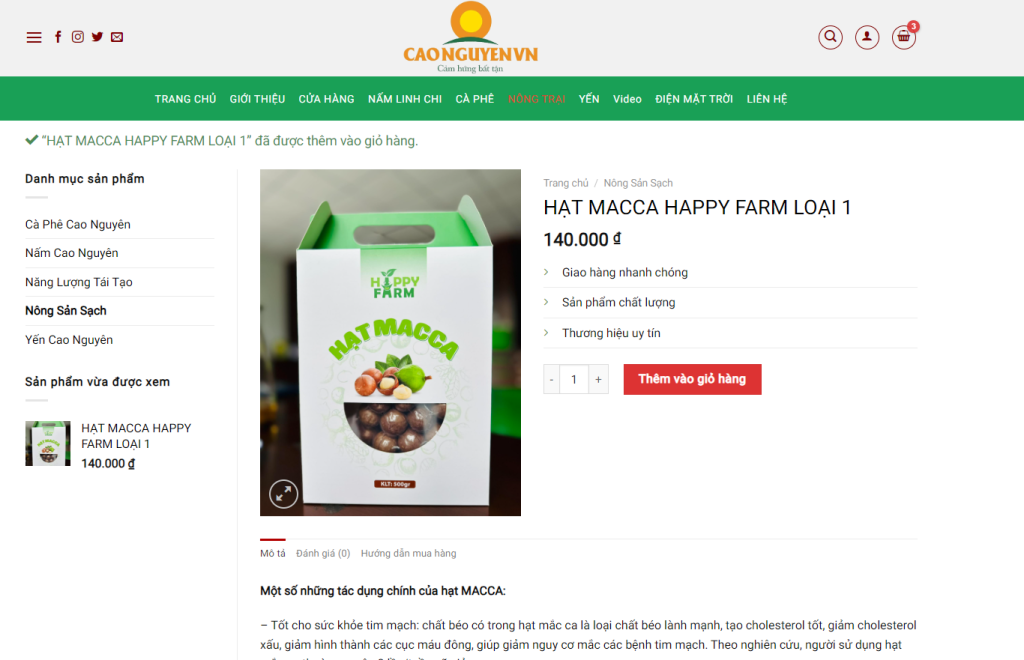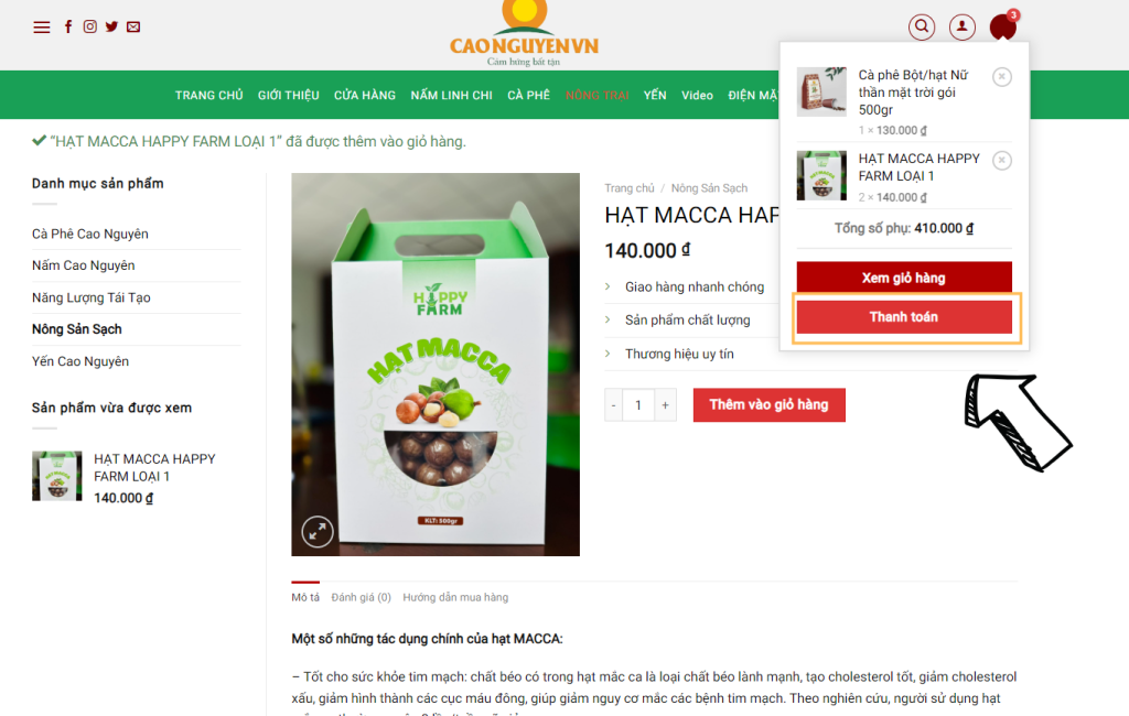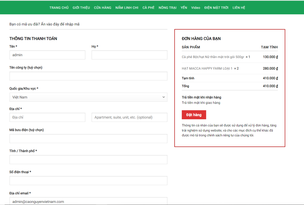 Cách 2: Đặt mua hàng trên website caonguyenvietnam